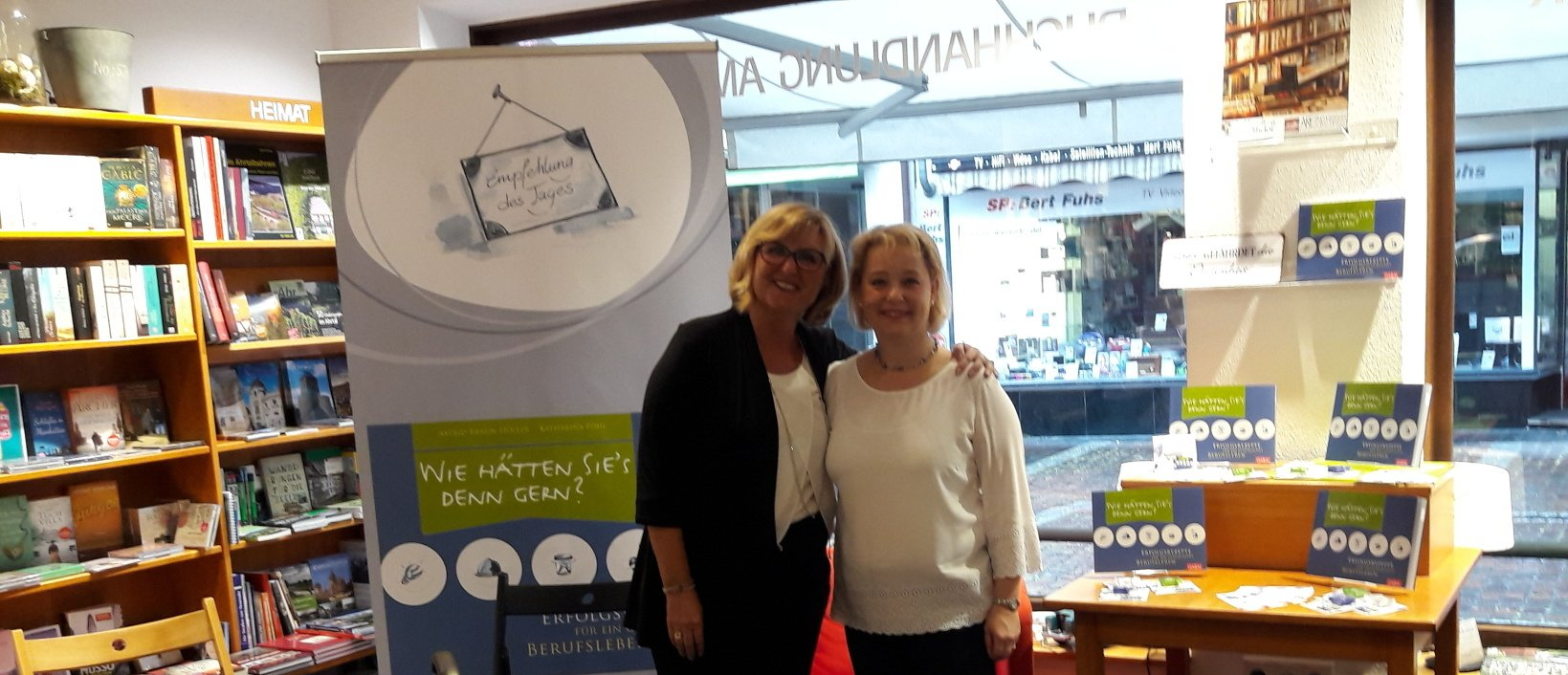 "Die Lesung aus "wie hätten Sie´s denn gerne?" war für alle Zuhörer sehr unterhaltsam. Authentisch brachten die beiden Autorinnen Astrid Braun-Höller und Katharina Pohl Erfolgsrezepte für die verschiedensten beruflichen Situationen auf den Tisch. Das Interesse an der Lesung war so groß, dass ich immer mehr Stühle im Verkaufsraum meiner Buchhandlung aufstellen musste, damit alle gespannt den in der Kochsprache verfassten wortwitzigen Texten lauschen konnten. Es war derart spritzig und kurzweilig, dass die Zuhörer im Anschluss an die Lesung noch einen Nachschlag forderten. Auch beim Buchverkauf wurde hungrig zugriffen, so dass ich noch einige Buchexemplare nachbestellen musste.